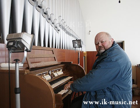Музыкант-священник отец Здислав Зайонц и органный настройщик Ежи Кукля с учениками музыкальной школы в католическом храме_2011